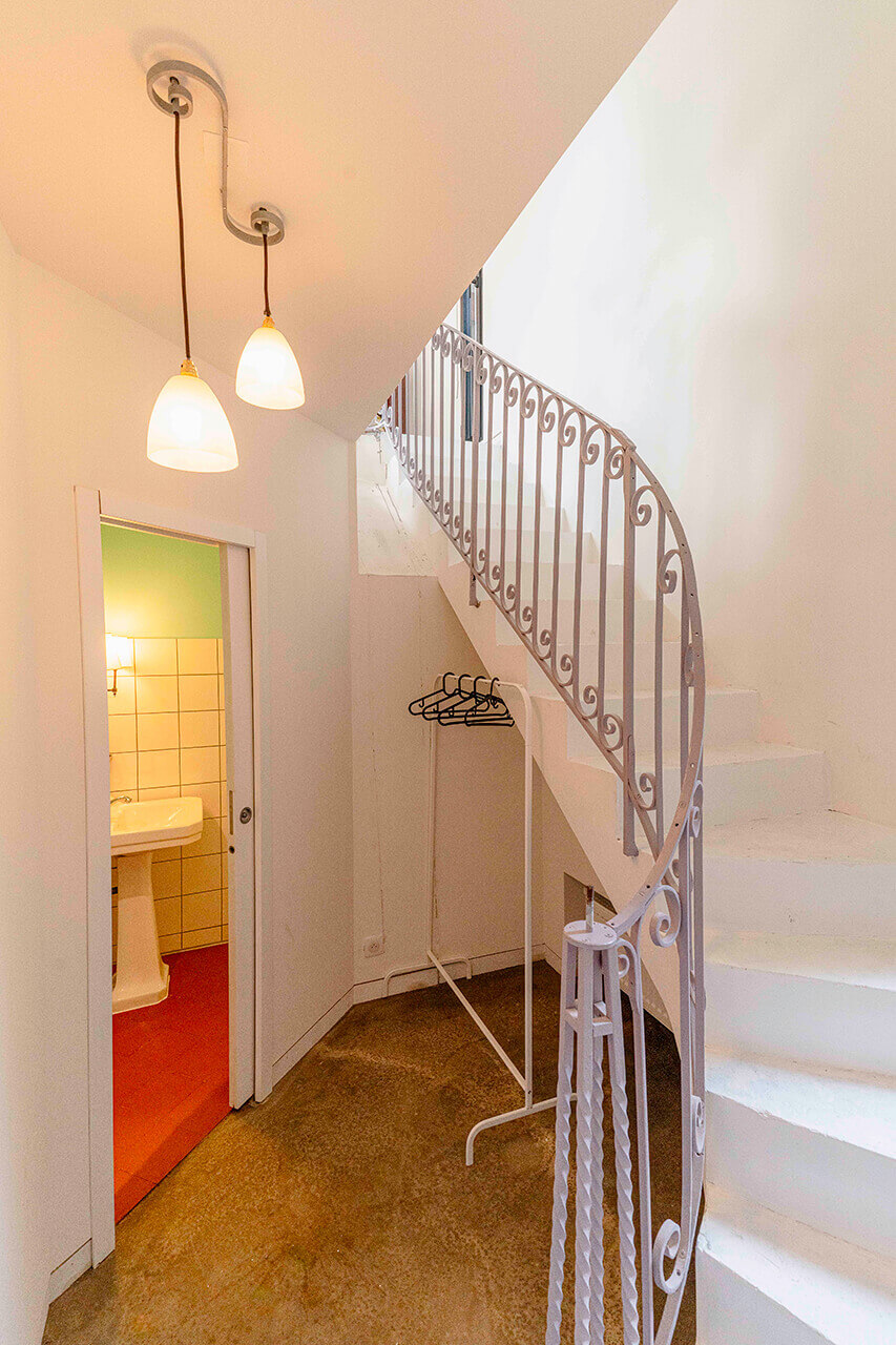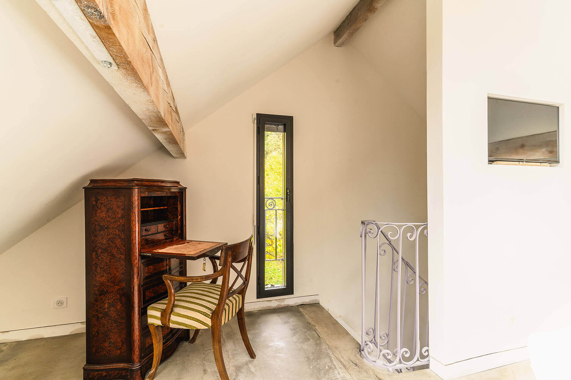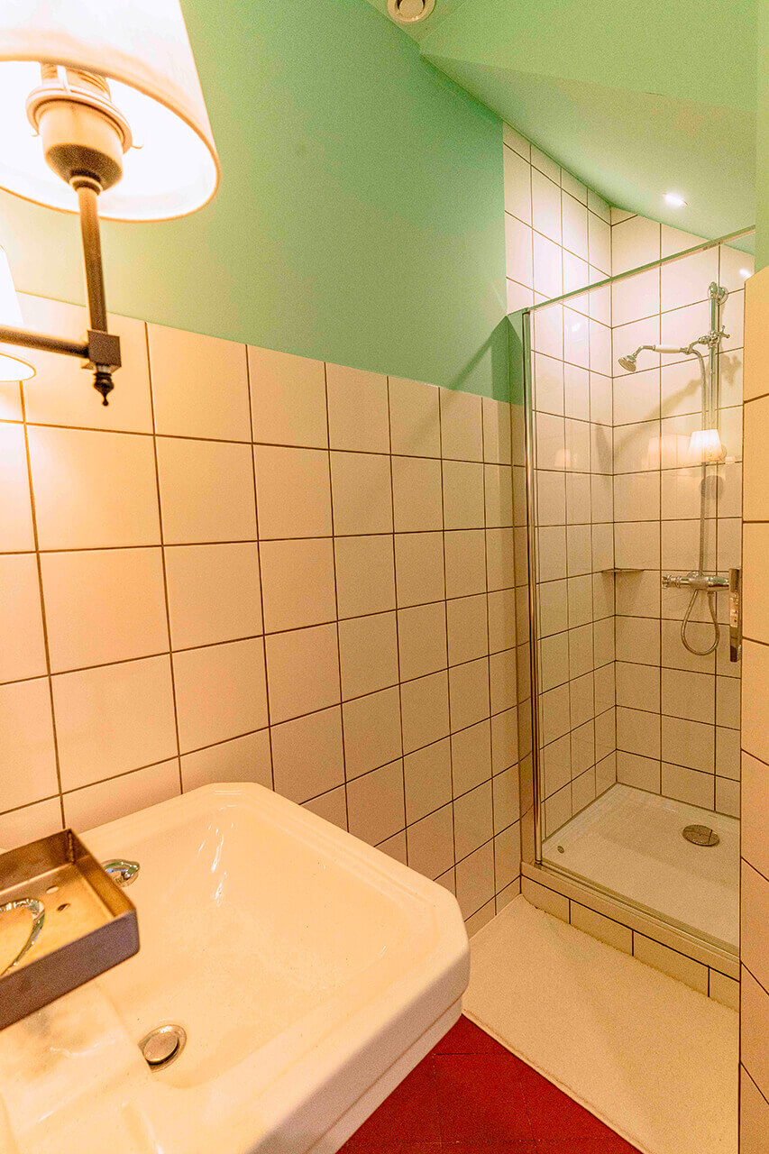 La chambre du four à pain, aménagée sur deux niveaux, combine l’intimité d’un coin nuit à l’étage avec vue sur les cimes du Haut Folin et la praticité d’un espace bagages et d’une salle de bain individuelle en rez-de-chaussée.